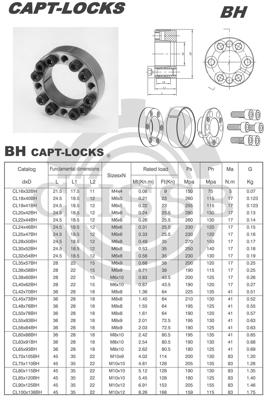 Range of product: DIN:(BH) Metric size product (Apply to DIN market) BH Type CAPT-LOCKS