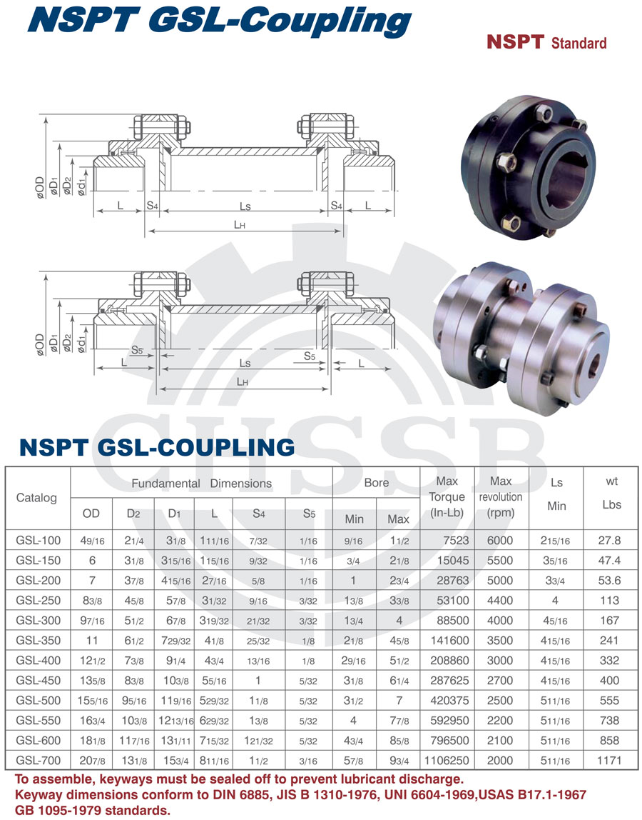 On assembly, keyways nust be sealed off to prevent lubricant discharge.1.5 Max angular misalignment per