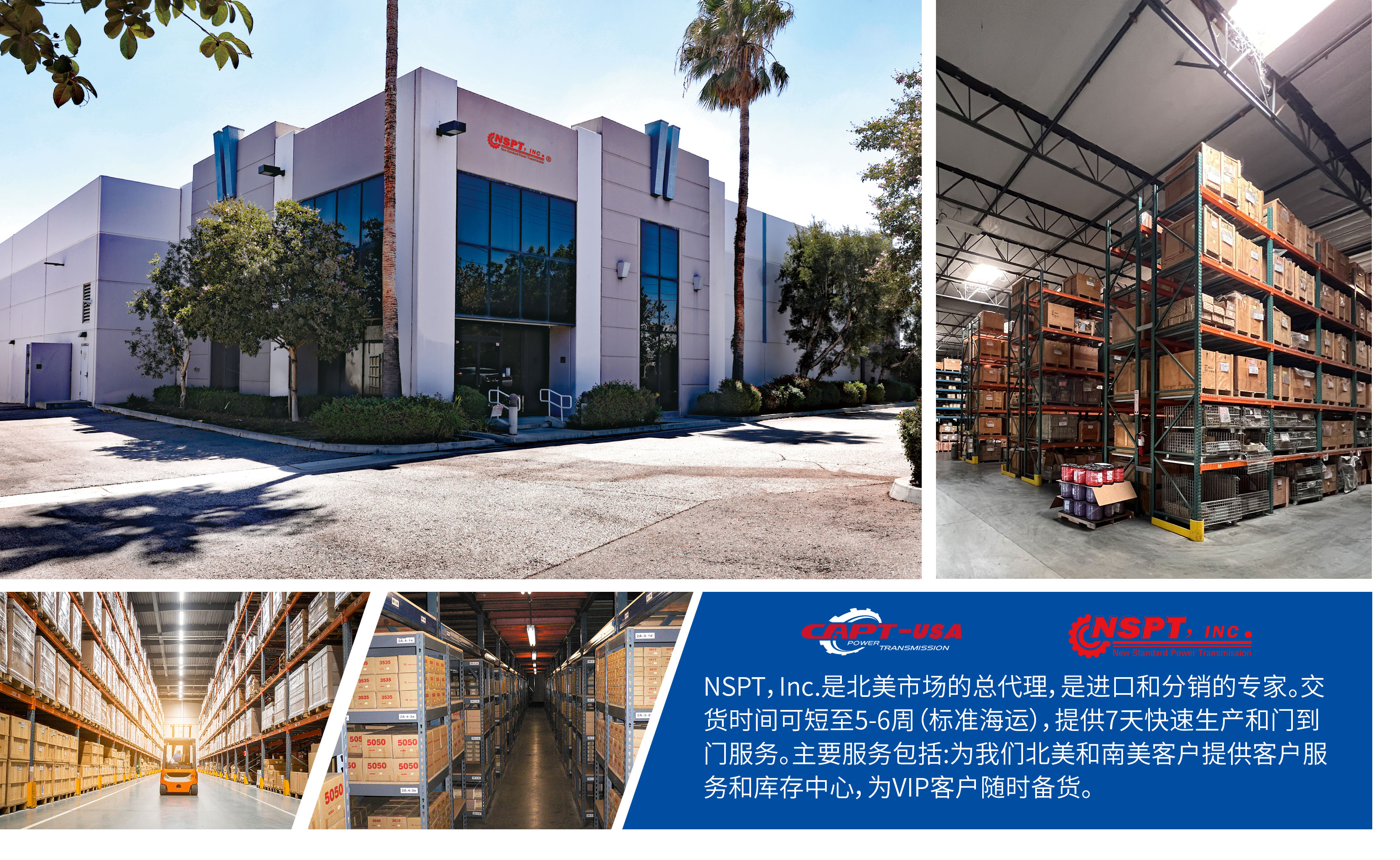 NSPT-USA, Inc. 為石家莊凱普特動(dòng)力傳輸機(jī)械有限責(zé)任公司北美分銷(xiāo)商,成立于2005年,是一個(gè)在標(biāo)準(zhǔn)傳動(dòng)產(chǎn)品行業(yè)成長(zhǎng)較快的專(zhuān)業(yè)分銷(xiāo)商,負(fù)責(zé)在美國(guó)、加拿大等北美地區(qū)的采購(gòu)、庫(kù)存管理和銷(xiāo)售工作。
